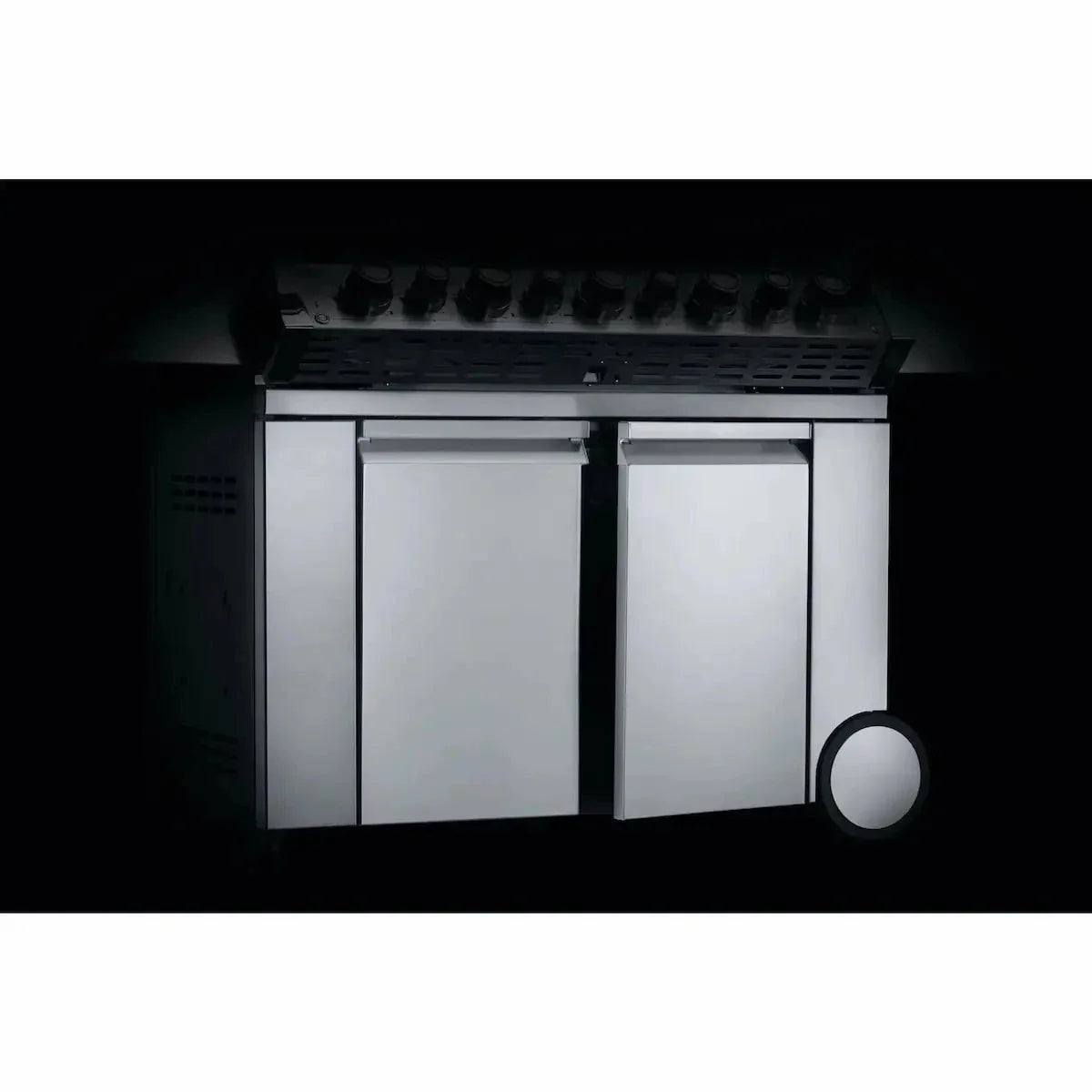 - Ten (10) Stainless Steel Burners including a dual infrared sear burner, infrared rotisserie, smoker tray burner, and two-stage power side burner